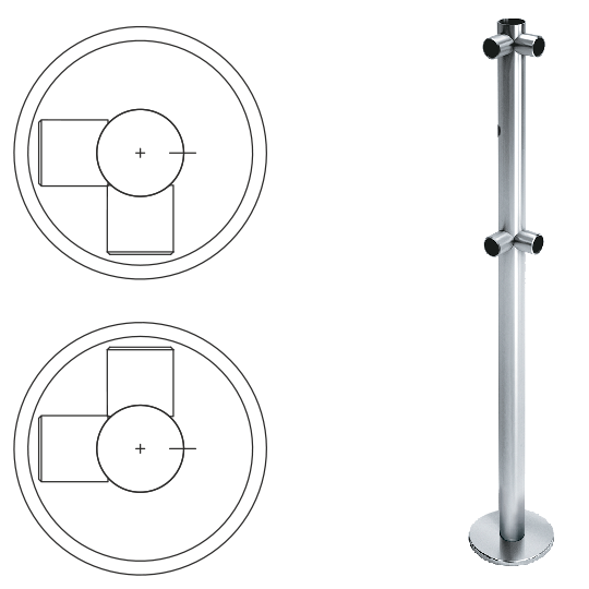 OXGARD ВЗР 1996.09.52 - Стойка ограждения с отверстием под фиксатор L-образная представляет собой трубу из шлифованной нержавеющей стали с одним отверстием для крепления фиксатора под поворотные створку и секцию и двумя муфтами с крепежом. Стойка ограждения обеспечивает четкую фиксацию и формирование зоны прохода, которое достигается за счет установки дополнительных ограждений. Данная модель используется для эффективного ограждения на проходных банков, административных учреждений, аэропортов. Модель идеально дополняет турникеты, применяется в системе с другими стойками, выполняющимися в едином дизайне. Конструкция стойки делает монтаж простым и позволяет создавать всевозможные конфигурации ограждения с поворотом на необходимый угол.