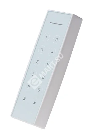 Исполнение — пластиковый корпус со стеклянной передней панелью, сенсорной клавиатурой, многоцветным (RGB) светодиодом и встроенным источником звукового сигнала для индикации состояний.