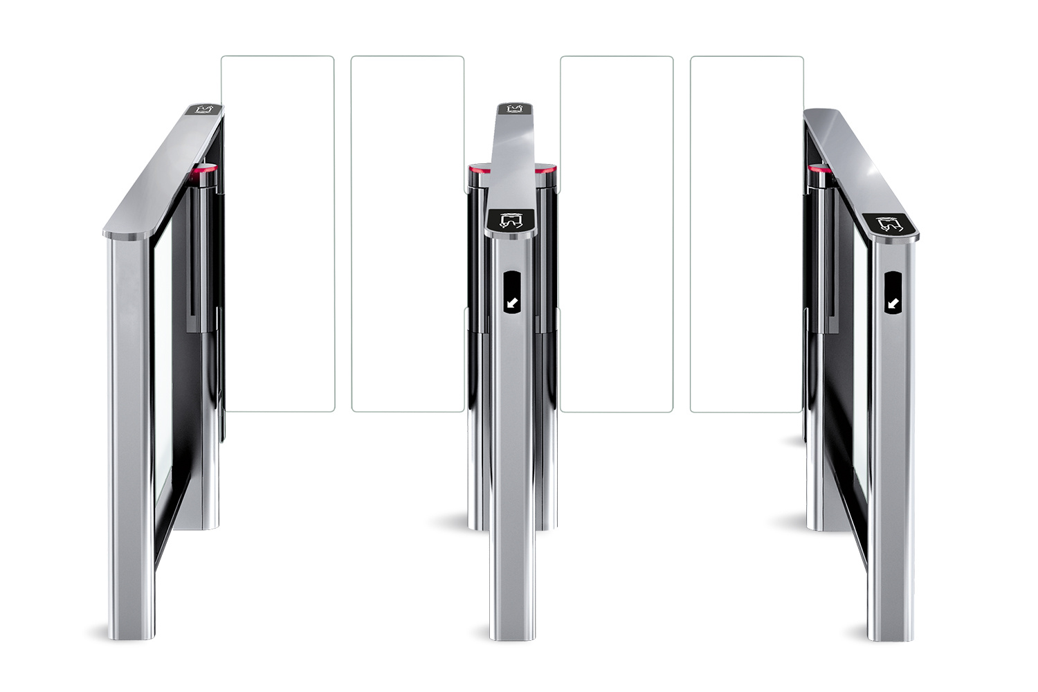 - Встроенная индикация: На центральных стойках расположены блоки индикации запрещения/разрешения прохода, на крышках — индикаторы разрешения, на торцах — подсвечиваемые указатели направления.