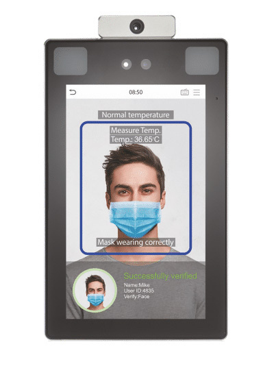 Биометрический терминал распознавания лиц и измерением температуры. Детекция маски на лице. Идентификация по ладони. Звуковая сигнализация. Дисплей 8" IPS , память: лиц 50000, событий 1 млн. TCP/IP, RS232, RS485, IP68, IK04, WIFI -30 +60 град. Время идентификации 0.3 с,