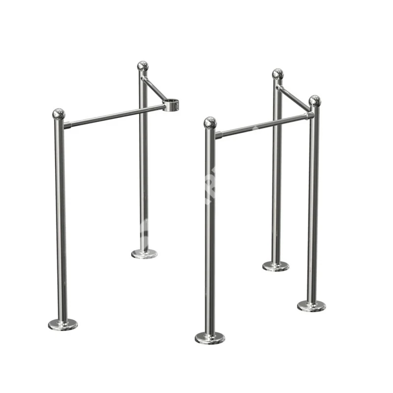 Ограждение угловое для полуростовых роторных турникетов ОУ-Р ХРОМ состоит из пяти стальных стоек с унифицированными крепежными узлами (муфтами) и четырех горизонтальных хромированных перемычек. Внизу стоек расположены кожухи, под которыми находятся фланцы с тремя отверстиями диаметром 11 мм для крепления ограждений к полу.