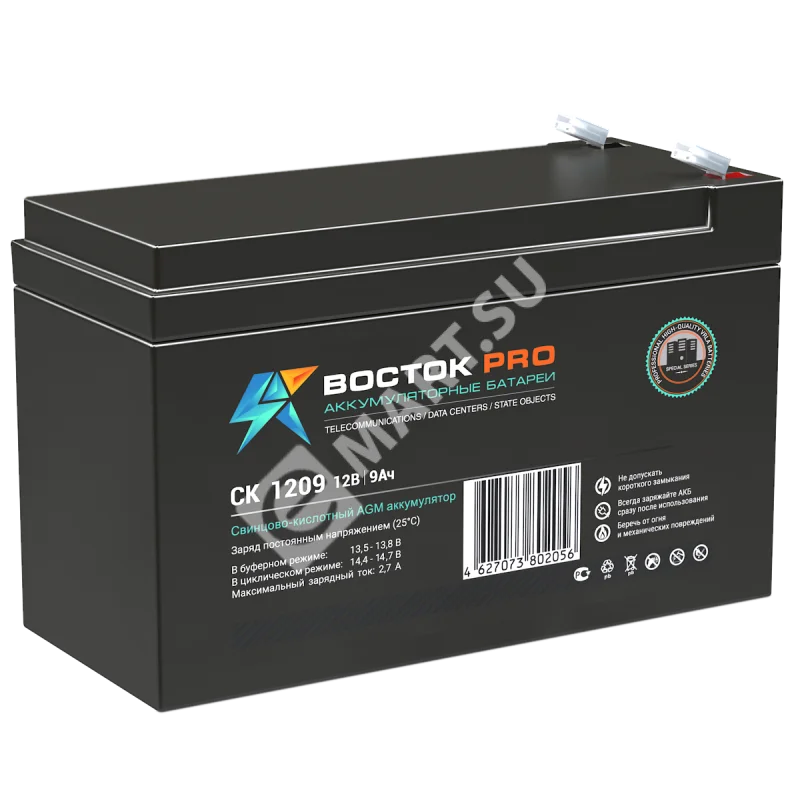 Свинцово-кислотные аккумуляторы ВОСТОК серии CK предназначены для использования в системах бесперебойного питания, резервного энергоснабжения, автономных энергосистемах. Изготовлены по AGM технологии (электролит, абсорбированный в стекловолоконном сепараторе), являются герметизированными и необслуживаемыми, со сроком службы в буферном режиме 10 лет (от 5 до 26 Ач – 5 лет). Обладают высокими разрядными и эксплуатационными характеристиками благодаря использованию в составе электролита и намазной пасты специальных добавок, препятствующих коррозии и замедляющих процесс старения.