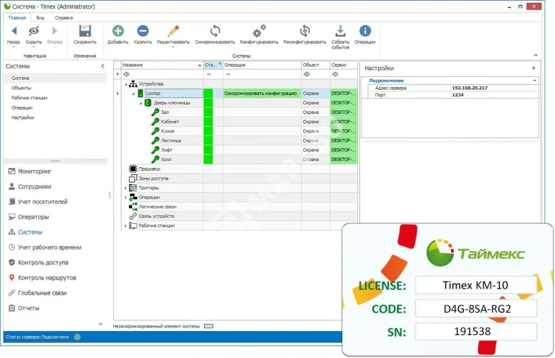 Лицензия на 10 ключей KeyGuard или Loxtop ключниц в ПО Таймекс.