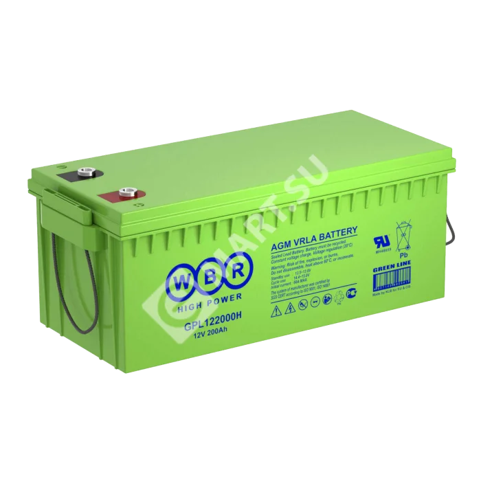 Аккумулятор WBR GPL122000H - герметизированные, выполненные по технологии AGM, свинцово-кислотные аккумуляторные батареи общего применения с увеличенным 12 летним сроком службы в буферном режиме или 260 циклов заряда-разряда в циклическом режиме при 100% разряде. Эти высокоэффективные перезаряжаемые батареи не требуют обслуживания в течение всего срока службы.