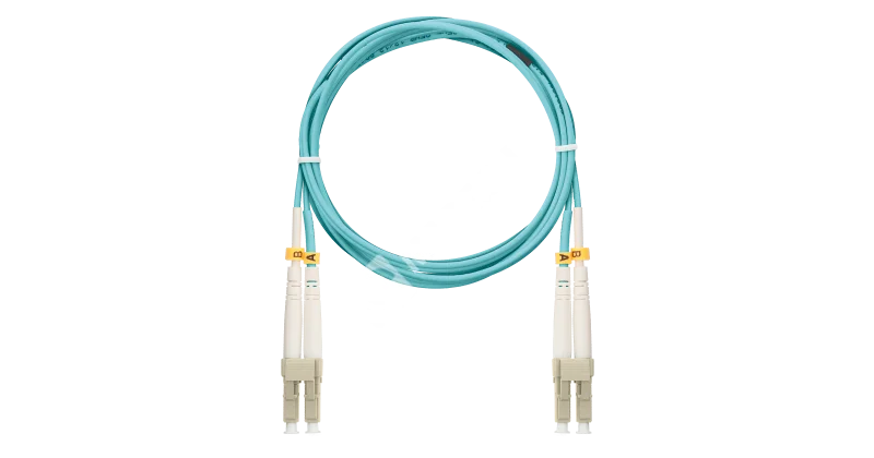 Шнур NIKOMAX волоконно-оптический, соединительный, многомодовый 50/125мкм, стандарта OM3, LC/UPC-LC/UPC, двойной, полимерный материал нг(A)-HF, 2мм, аква, 5м