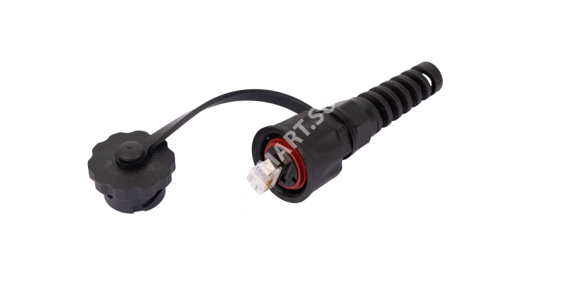 Индустриальный коннектор NIKOMAX RJ45/8P8C, Кат.6a (Класс Ea), 500МГц, покрытие 50мкд, экранированный, IP67, для одножильной витой пары, с защитной крышкой, черный