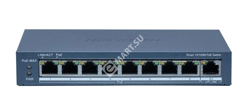 Управляемый PoE-коммутатор Hikvision DS-3E0310P-E/M(B) с 8 портами PoE и 2 гигабитными uplink-портами